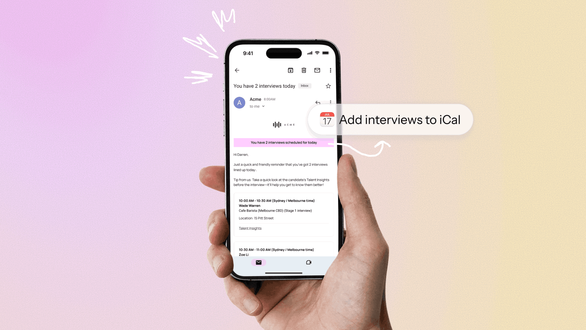 With this kept in mind, I've designed an option for interviewers to add iCal reminders directly from the confirmation email they receive when a candidate books an interview. This gives them interview visibility in their calendar now.