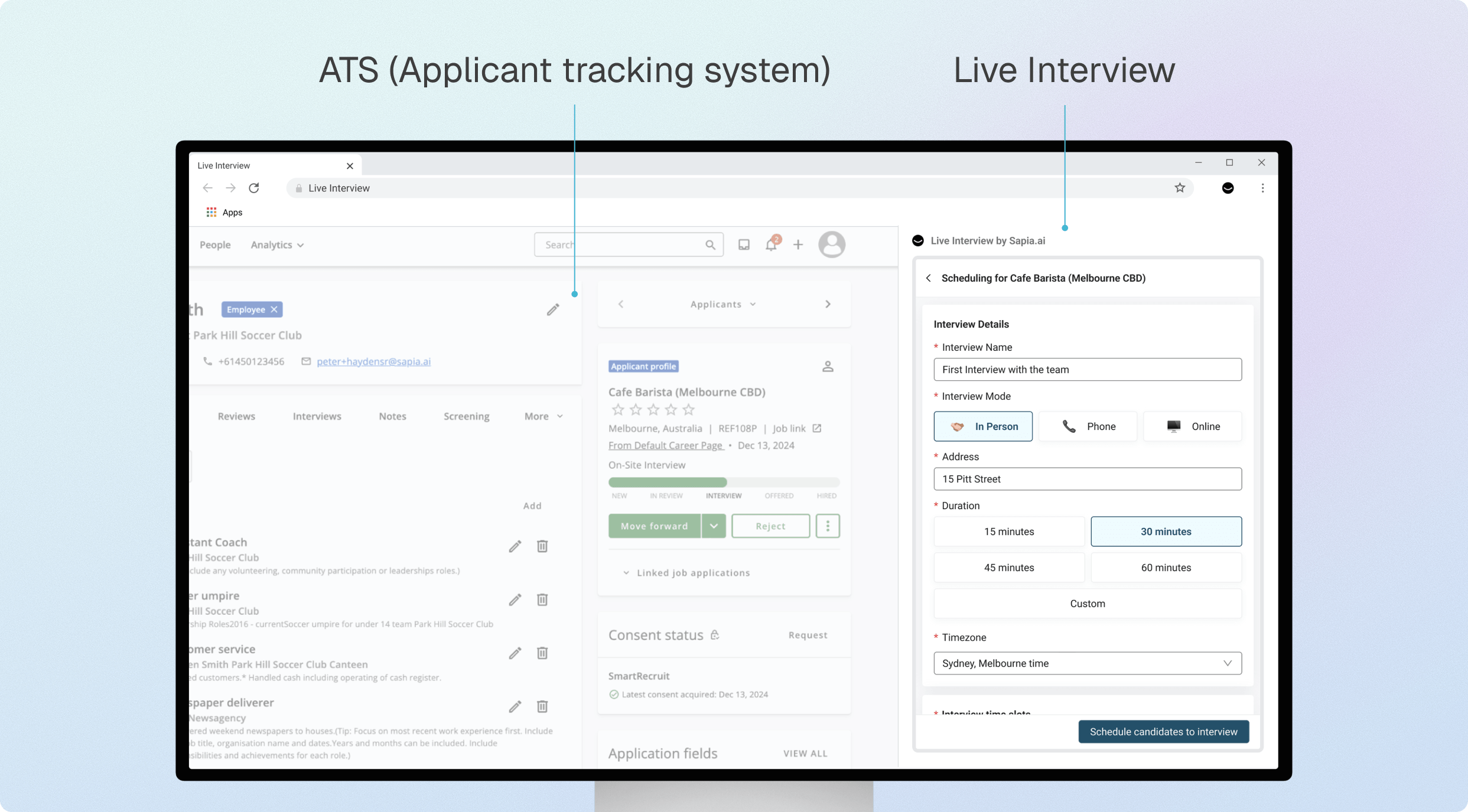Schedulers can now push candidates directly from their ATS to Live Interview in one click, with candidate data carried over automatically.