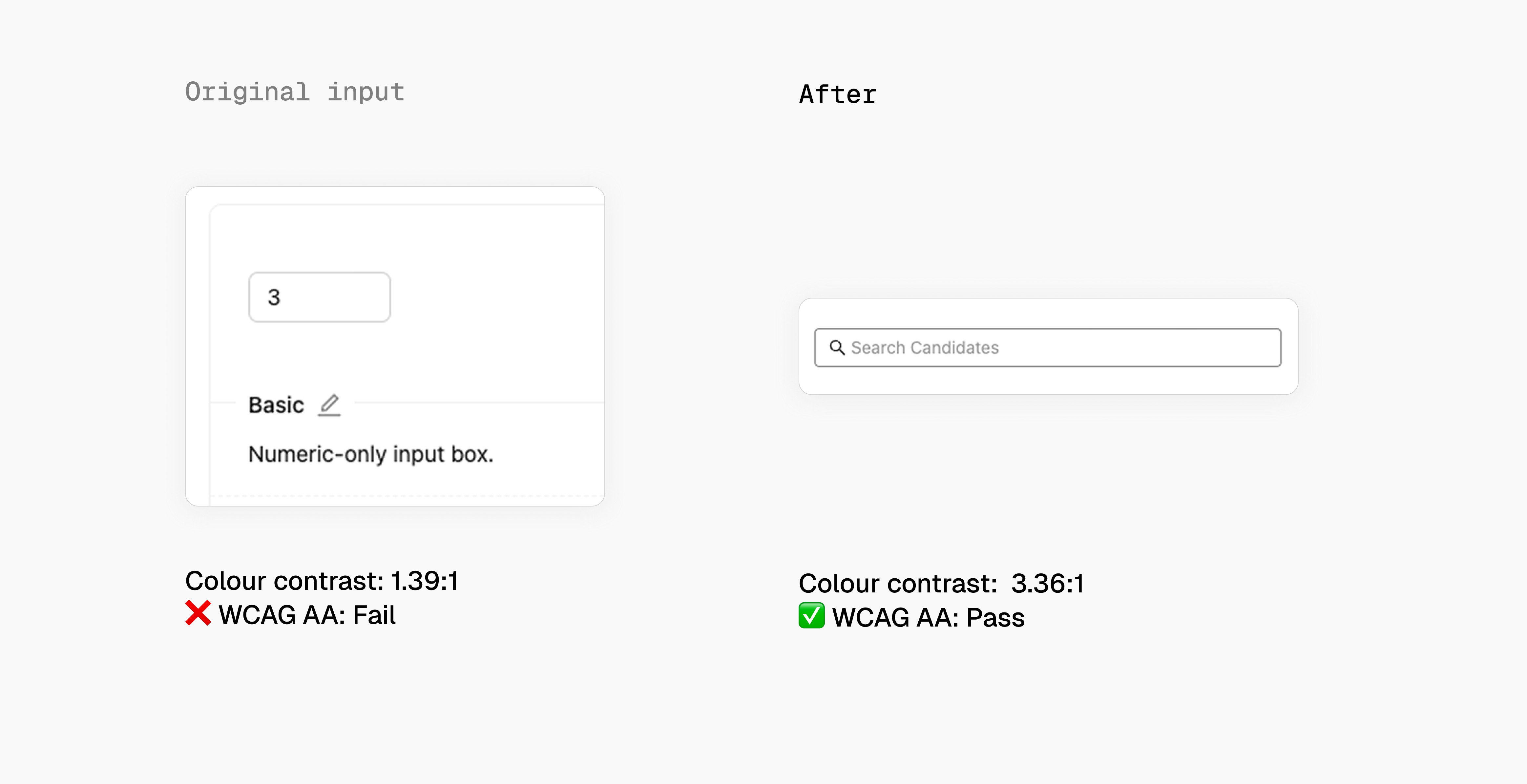 Pink is our brand colour, but didn’t meet WCAG AA standards. I decided to use our secondary brand blue as the main UI colour