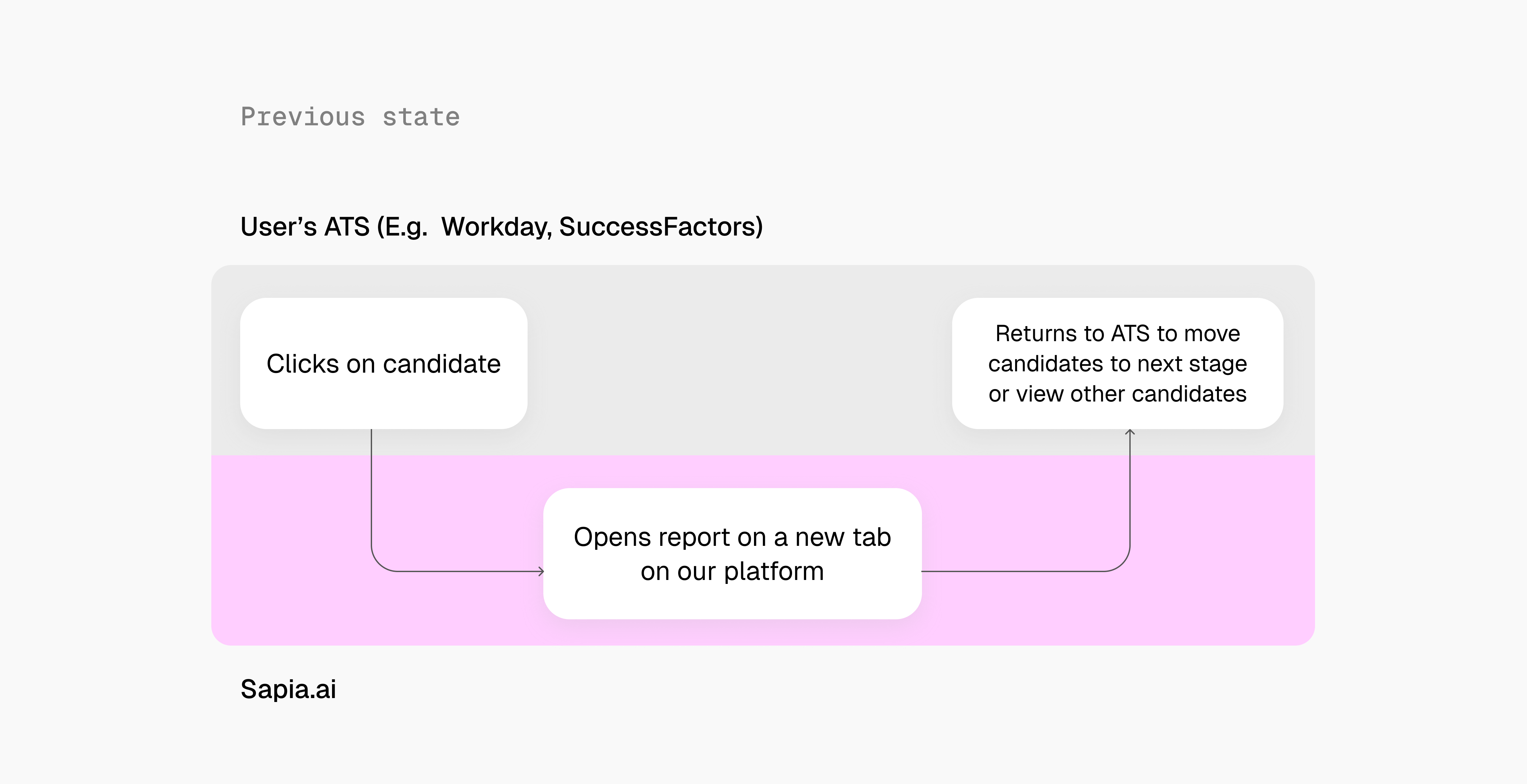 Previous state: The process of viewing candidate reports and moving candidates forward required a back and forth between our platform and the ATS.