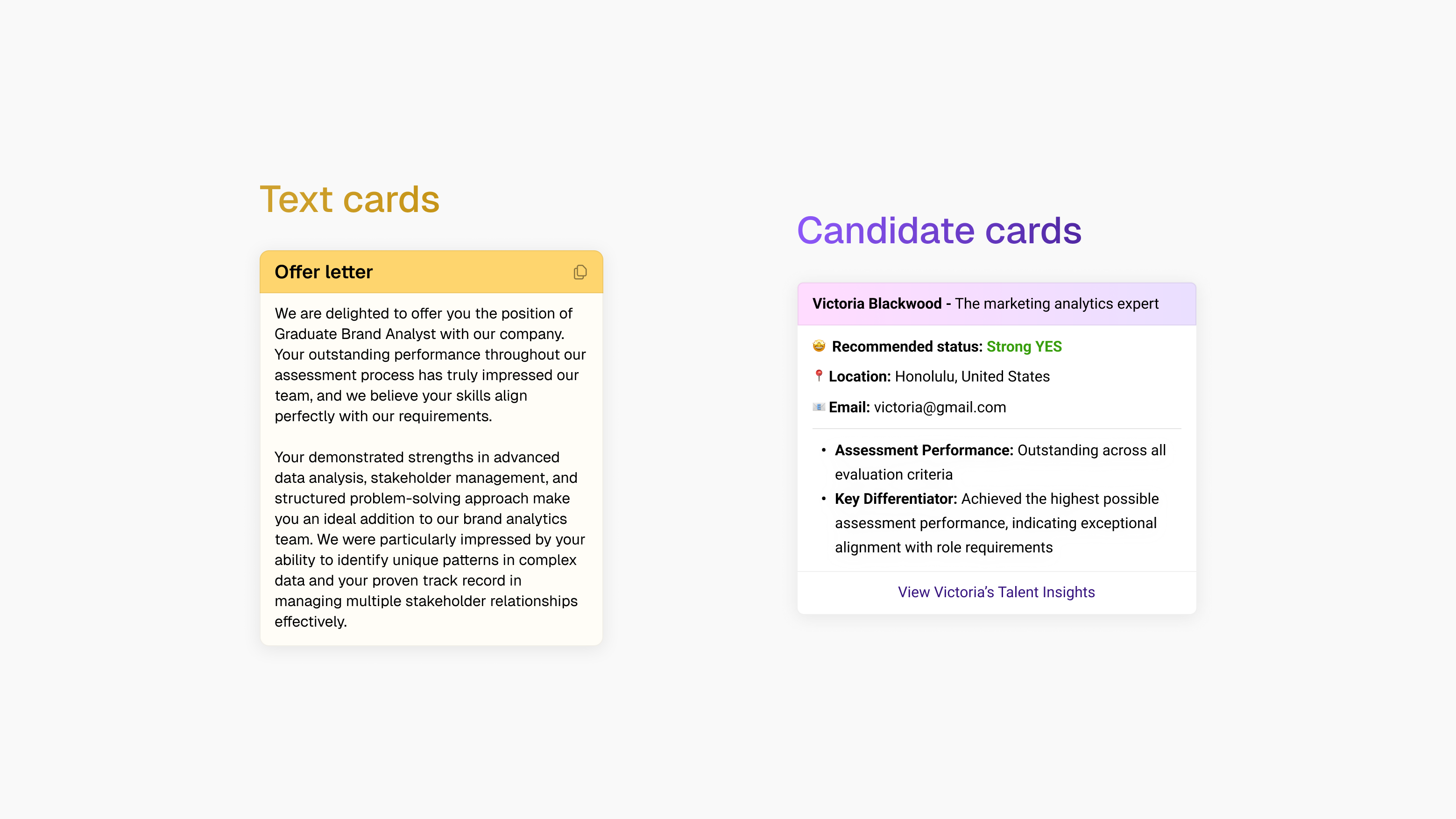 Surfacing answers to questions like “Why is this candidate the best fit?”, improving their efficiency and understanding of their candidate pool.