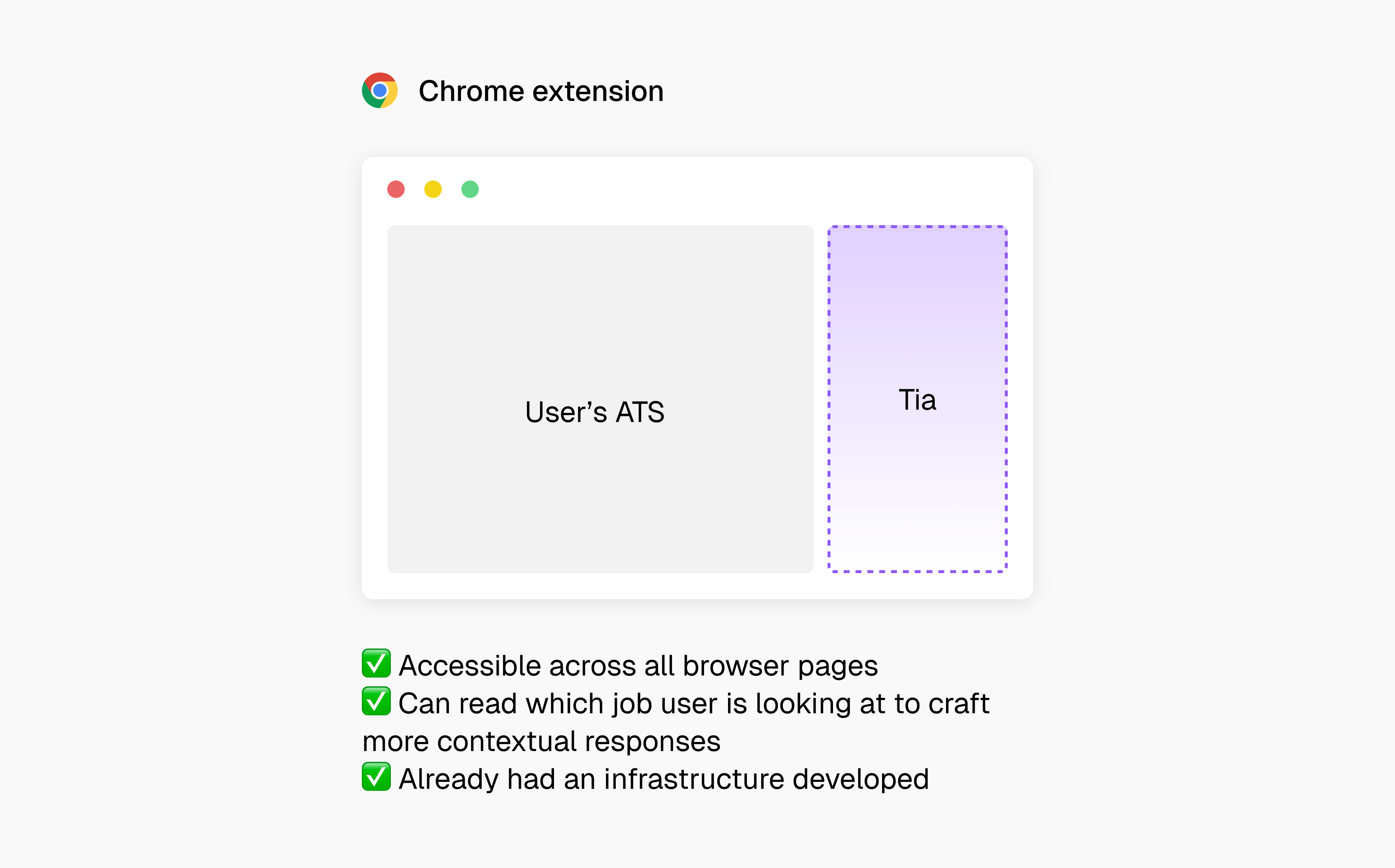 We already had a Chrome extension in place for interview scheduling. It made sense to integrate Tia directly into it, giving users access to AI assistance while browsing on their ATS.