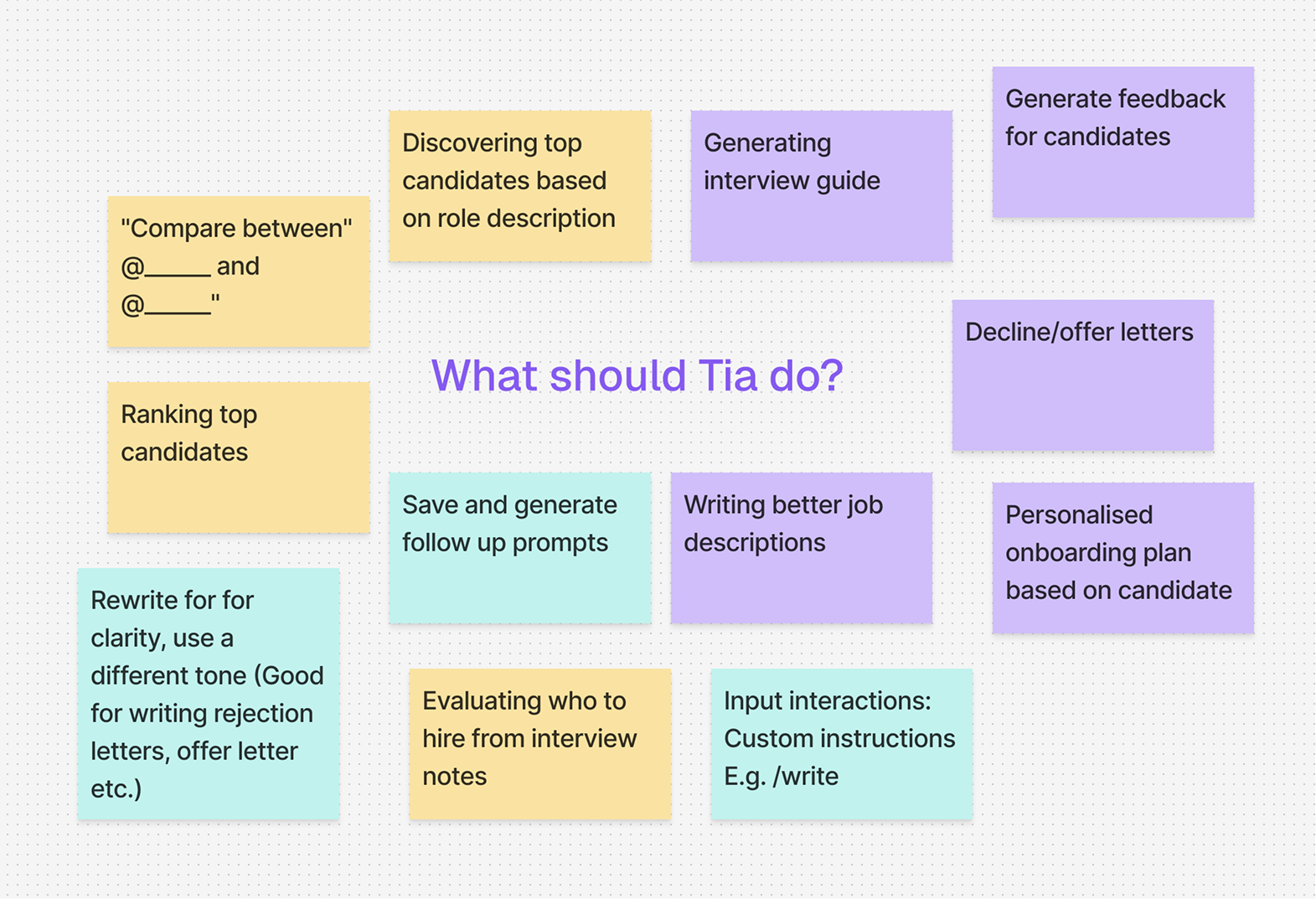 Mapping out the full hiring journey, we have uncovered opportunities for Tia well beyond candidate search: from drafting offer letters to developing training plan based on their weaknesses.