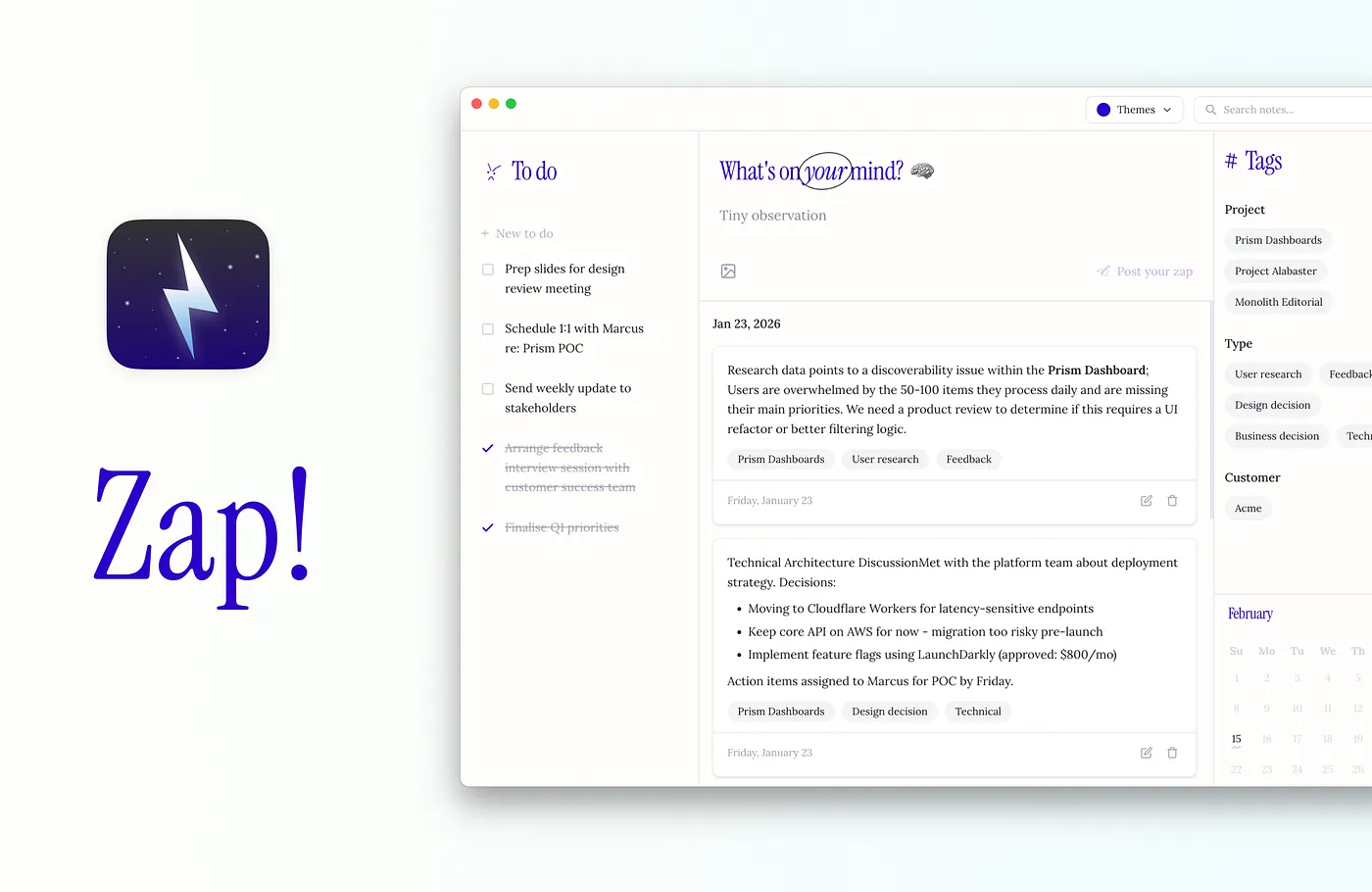 I called it “Zap” - because the app centres on quick notes — fast and immediate, like a lightning flash.