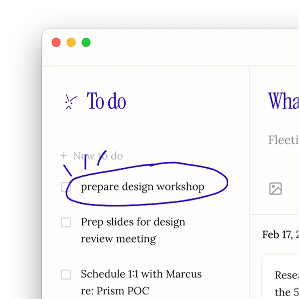 Typing in “To do:” automatically adds items to the to-do list. This way I can add in notes on the fly, especially during meetings.